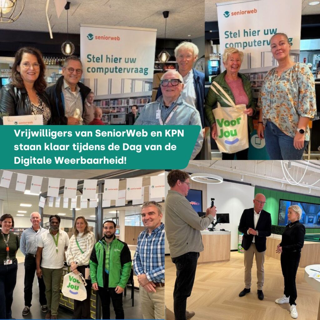 De hulp op locatie wordt op 8 oktober verzorgd door KPN-vrijwilligers die zich inzetten via het KPN Mooiste Contact Fonds. Dit fonds verbindt KPN-medewerkers aan maatschappelijke initiatieven die bijdragen aan inclusie en digitale toegankelijkheid. Op deze dag slaan zij de handen ineen met de vrijwilligers van SeniorWeb. Samen staan ze klaar om bezoekers te helpen bij hun digitale vragen en om meer bewustwording te creëren. “Veel mensen hebben vragen, maar weten niet altijd waar ze terecht kunnen”, vertelt René Kuster, directeur-bestuurder bij SeniorWeb. “Het is geweldig dat wij nu samen met KPN een laagdrempelige plek bieden. Iedereen is welkom met allerlei digitale vragen, bijvoorbeeld over phishing of het aanmaken van sterke wachtwoorden. Dat sluit goed aan bij wat wij dagelijks doen: mensen op een betrouwbare manier helpen met hun digitale vragen. Gewoon persoonlijk, in de winkel, bibliotheek of het buurthuis.”